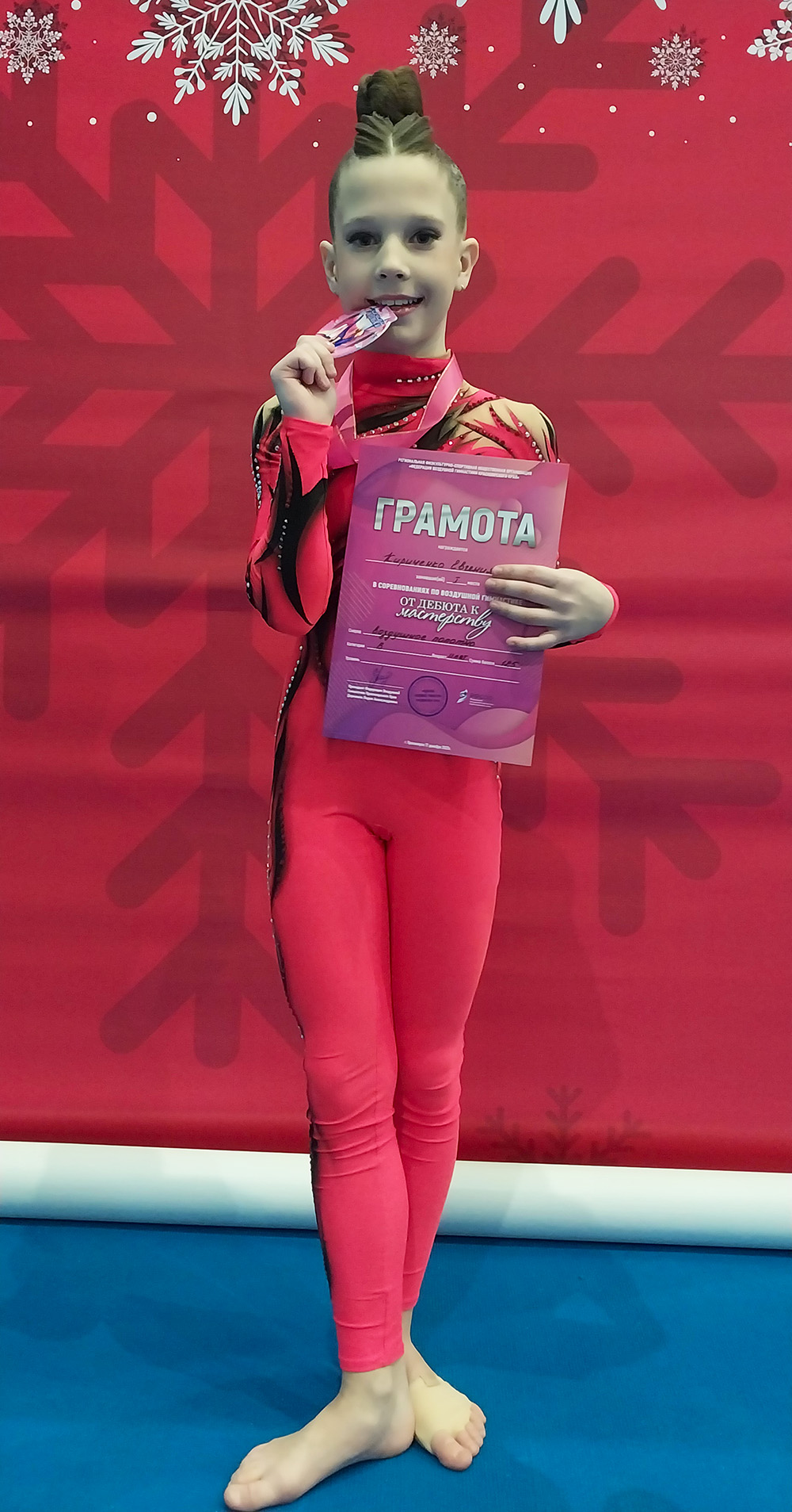 Главной особенностью модели стали волнообразные настрочки из черного бифлекса, которые украшают верхнюю часть и одну из штанин. Ручная роспись аэрографом черного цвета создает эффект легкой дымки, словно продолжение линий, добавляя образу динамики и загадочности. «Храброе сердце» — для гимнасток, чьи выступления полны смелости и эмоций, а каждый элемент костюма подчеркивает силу и грацию своей обладательницы.