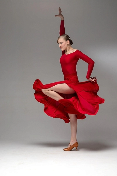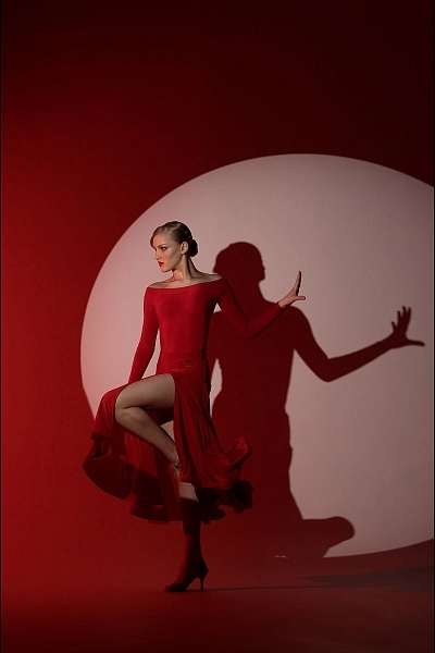 Насыщенный красный цвет притягивает взгляды и усиливает выразительность каждого движения на паркете.
