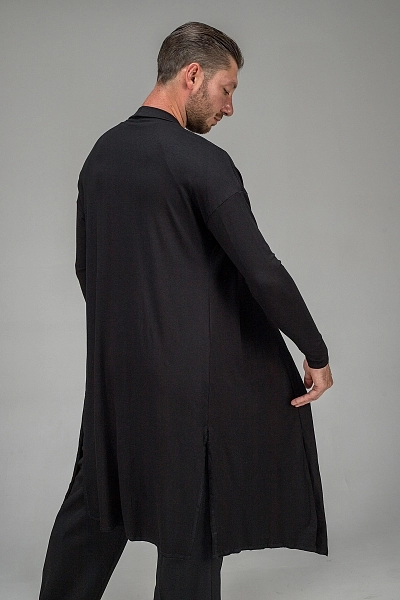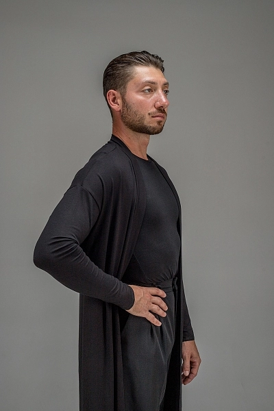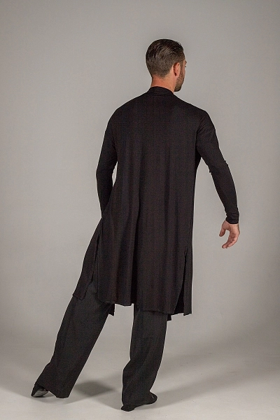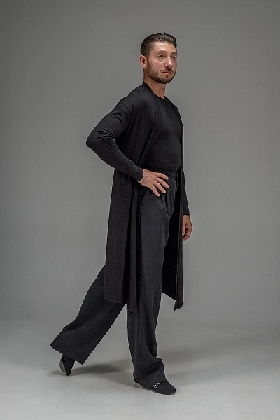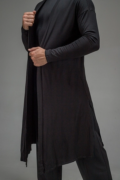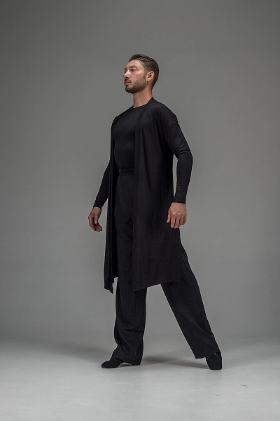 Кардиган мужской Dakota - мягкий и комфортный длинный кардиган из вискозного трикотажа (95% вискоза, 5% спандекс). Эластичная и приятная на ощупь ткань матовая, не накапливает статического электричества и сохраняет форму даже при активных движениях. Черный цвет придаёт строгий и универсальный стиль, а длина кардигана обеспечивает дополнительный комфорт и свободу движений на тренировках, репетициях и повседневной носке.
