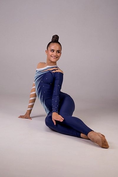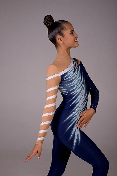 Для тех, кто танцует среди звезд и чье тело парит в невесомости красоты и силы, создан комбинезон «Интерстеллар». Он выполнен из глубокого синего бифлекса, словно сотканного из самой космической бездны, а его дизайн воплощает загадочную эстетику далеких галактик.