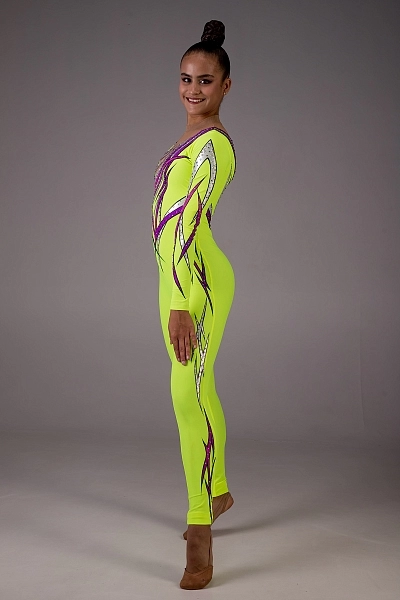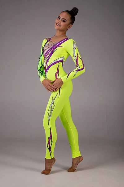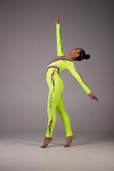 Раскройте новый уровень сценического образа в комбинезоне «Касабланка», где современный дизайн встречается с безупречной функциональностью. Основой стал матовый лаймовый бифлекс насыщенного оттенка, а стойка и область груди из итальянской сетки добавляют образу легкости и элегантности. Потайная молния сзади обеспечивает идеальную посадку, сохраняя чистоту линий.