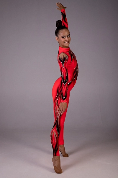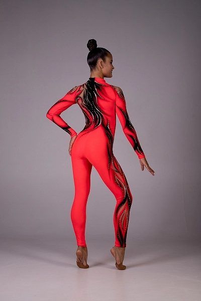 Воплотите дух бесстрашия и огненной страсти в комбинезоне «Храброе сердце», созданном для самых смелых выступлений. Основа из яркого матового бифлекса оранжево-красного цвета символизирует энергию и отвагу, а стойка и верх из итальянской телесной сетки добавляют образу легкости и изящества. Потайная молния на спине обеспечивает идеальную посадку, сохраняя чистоту линий.