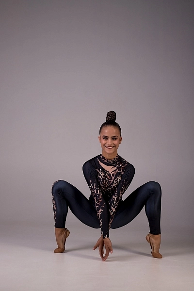 Для гимнасток, в чьих жилах течет дикая энергия и неукротимая сила, создан комбинезон «Леонель». Это воплощение хищной грации и дерзкой элегантности, готовое к самому страстному выступлению.