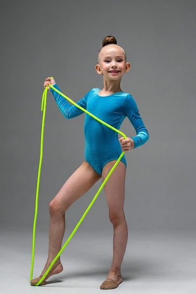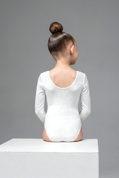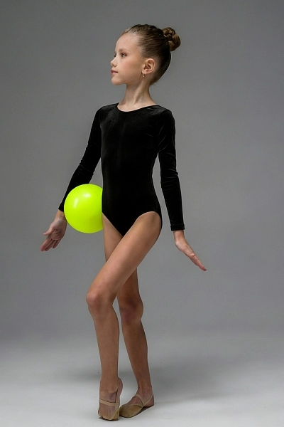 Лаконичный крой с длинным рукавом создаёт аккуратный, собранный силуэт и подчёркивает пластику гимнастки. Глубина выреза на спинке добавляет образу лёгкость и визуально вытягивает линию корпуса. Бархат мягко облегает фигуру, не сковывает движения и сохраняет форму даже при активной нагрузке. Купальник подходит для выступлений любого уровня — от первых стартов до серьёзных соревнований. «Алисия» станет универсальной базой для создания как нежного, так и более выразительного сценического образа.
