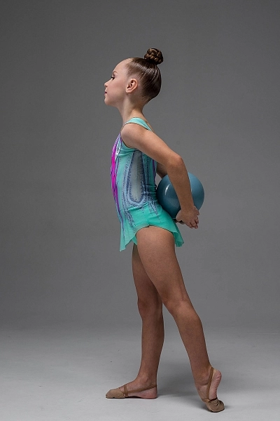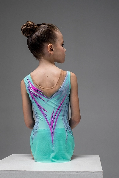 Особый шарм образу придаёт лёгкая юбочка из сетки — она воздушно ложится по бедру и подчёркивает пластику, не утяжеляя композицию. Приталенная посадка и эластичные материалы обеспечивают комфортную поддержку и свободу элементов, чтобы купальник работал вместе с гимнасткой. Принт и линии визуально вытягивают силуэт и подчёркивают спину, делая образ максимально выигрышным с любого ракурса. «Ариэль» идеально подойдёт для выступлений, где важно выглядеть уверенно, современно и заметно. Этот купальник создан, чтобы блистать на соревнованиях и запоминаться судьям с первого выхода.