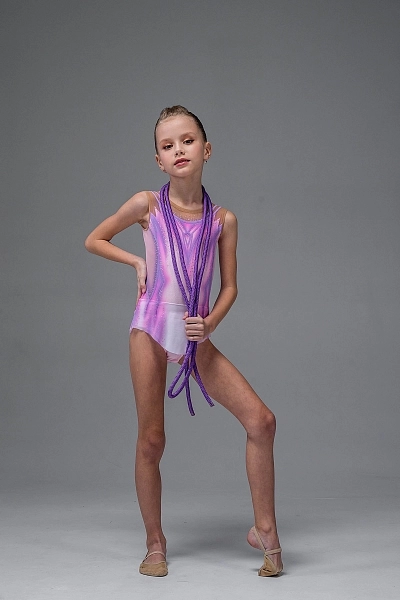Купальник для художественной гимнастики «Лилиана» — нежный и утончённый образ в розово-лиловой гамме, созданный для выразительных и пластичных программ. Основа выполнена из эластичного бифлекса, а верхняя часть оформлена итальянской телесной сеткой, которая аккуратно подчёркивает линию плеч и создаёт эффект лёгкости. Дизайн построен на плавных вертикальных линиях и мягких переходах цвета, визуально вытягивающих силуэт и подчёркивающих осанку гимнастки.