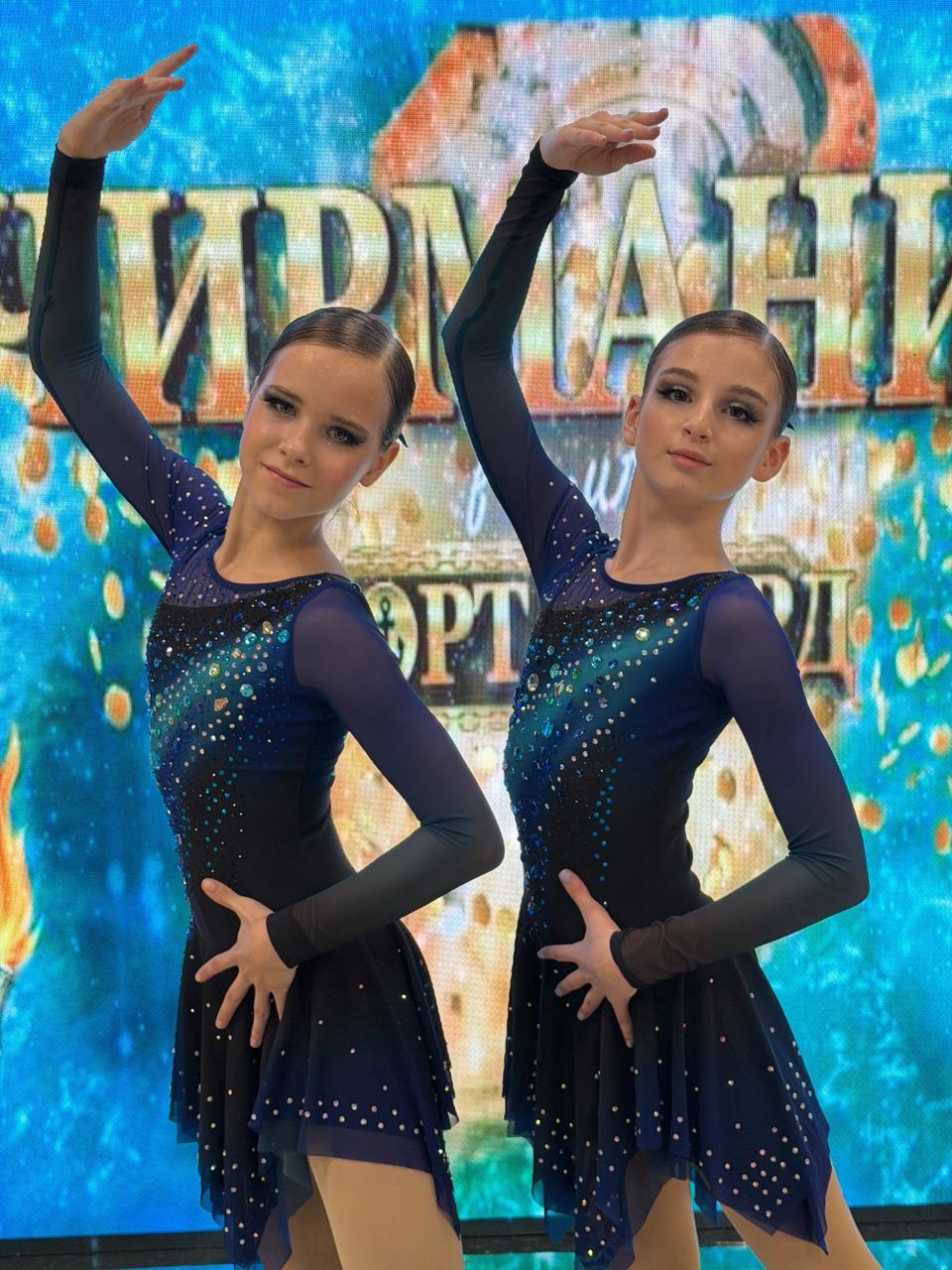 Платье «Магия льда» будто соткано из самого зимнего воздуха — лёгкого, прозрачного и пронизанного холодным светом. Глубокий чёрно-синий градиент плавно переходит в сияющие голубые узоры, напоминающие отблески льда на вечернем катке. Нижний слой из бифлекса обеспечивает комфорт и чёткую посадку, а сетка сверху добавляет эффект лёгкости. Телесная сублимация на спине формирует визуальный вырез, придавая силуэту элегантность и выразительность. Полные рукава и короткая двойная асимметричная юбка из сетки украшены мягким градиентом, будто отражающим ледяное сияние с разных углов. Это не просто костюм, а образ, в котором чувствуется хрупкость инея и сила зимней сказки. «Магия льда» создана для тех, кто превращает лёд в искусство.