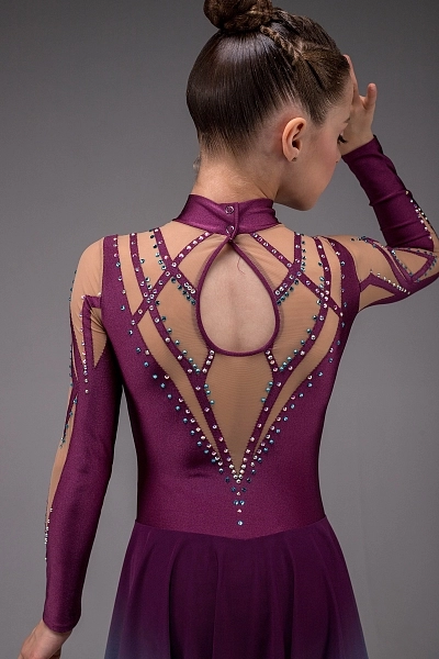 Платье для фигурного катания «Верона» — это воплощение элегантности и выразительности. Основной цвет — сложный малиновый, глубокий и благородный, придаёт образу насыщенность и утончённость. Верх выполнен из качественного малинового бифлекса и телесной итальянской сетки, создающей эффект прозрачности и лёгкости. Тонкие настройчки линий из бифлекса украшают рукава, зону груди и спины, формируя изящные узоры, которые подчёркивают движения фигуристки и гармонично обрамляют силуэт. Воротник-стойка и застёжка-«капелька» на спине добавляют образу утончённости и завершённости.