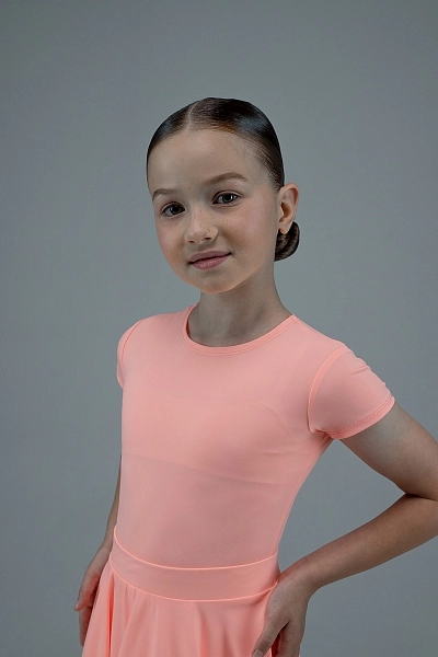 Короткий спортивный рукав подчеркивает современную эстетику, добавляя образу легкости и собранности. Пышная юбка-солнце на эластичной резинке раскрывается в танце воздушным объемом, создавая плавные и выразительные линии в каждом движении.