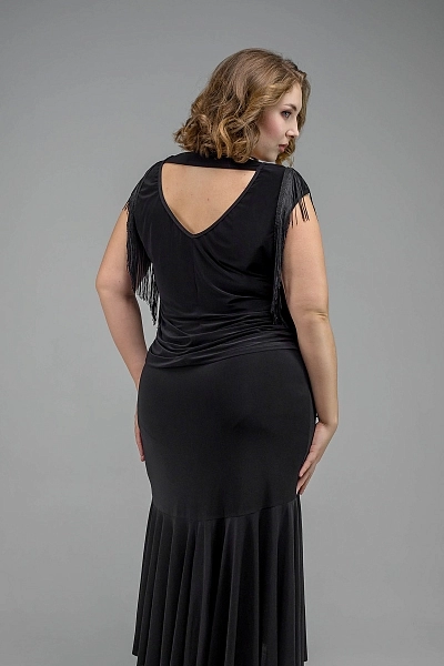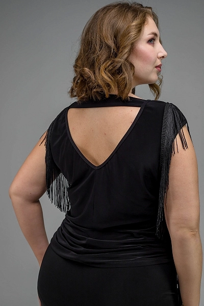 Топ Isabella — эффектная и универсальная модель с яркими акцентами, созданная с учётом идеальной посадки, в том числе в больших размерах. Мягкое струящееся масло плавно облегает фигуру, не подчёркивая лишние объёмы и создавая аккуратный, собранный силуэт. Вертикальные линии бахромы по плечам визуально вытягивают верхнюю часть тела и отвлекают внимание от зоны рук, что особенно выигрышно смотрится в plus size. Продуманный крой мягко корректирует область талии и живота, обеспечивая комфорт даже при активных движениях. Глубокий V-образный вырез на спине добавляет образу сценичности и элегантной сексуальности, оставаясь при этом удобным и уверенным в посадке. Топ отлично держится на фигуре и красиво работает в динамике танца.