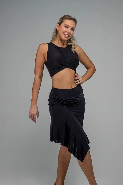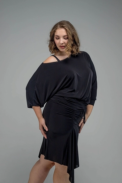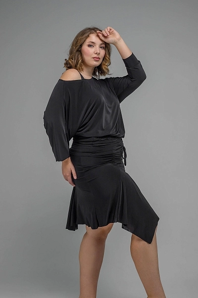 Юбка Napoli — лаконичная и элегантная модель с выразительной асимметрией, созданная для комфортной и уверенной посадки, особенно в больших размерах. Мягкое струящееся масло красиво ложится по бёдрам, не утяжеляя силуэт и визуально вытягивая фигуру. Асимметричный низ с удлинённым клином создаёт эффект движения и подчёркивает пластику ног, делая шаг более выразительным. Высокая посадка мягко фиксирует талию, сглаживает линию живота и обеспечивает аккуратный, собранный силуэт — важное преимущество для plus size. Юбка не перетягивает и не подчёркивает лишнее, позволяя чувствовать свободу и уверенность в каждом движении. Вшитые трусы гарантируют полный комфорт и спокойствие даже при активных танцевальных элементах.